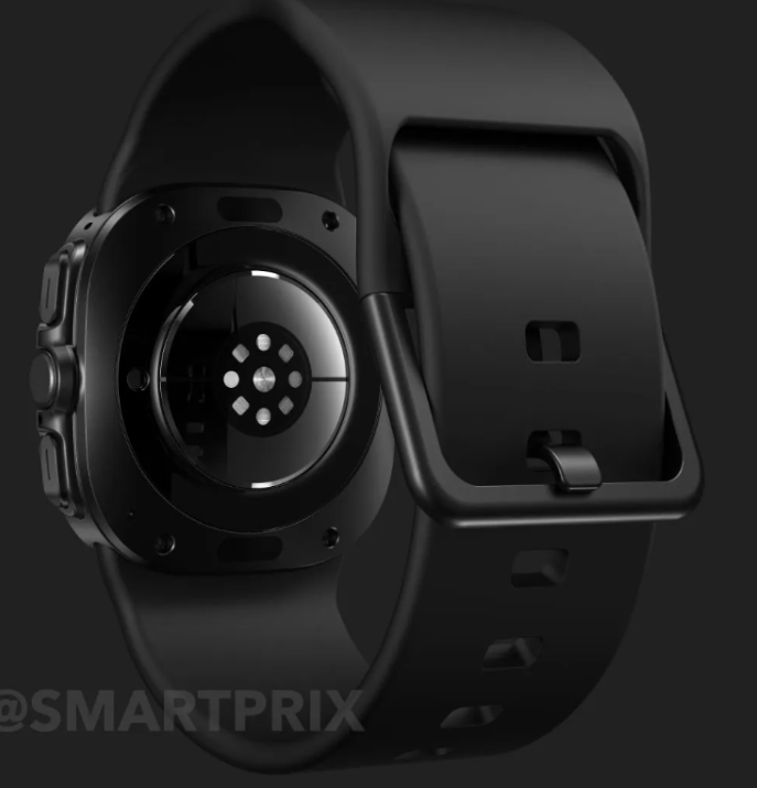 갤럭시 워치 7 울트라 랜더딩 이미지입니다. 역시 가장 먼저 눈에 띄는 디자인이 새로운 사각형 모양의 프레임과 그 안에 원형으로 들어간 디스플레이입니다. 애플과 비슷한 듯 아닌 듯, 따라한 듯 아닌 듯 개인적으로는 애매한 디자인으로 보이는데요, 기존의 삼성 갤럭시 워치의 디자인과는 거리가 멀어 보이는 것이 사실입니다.