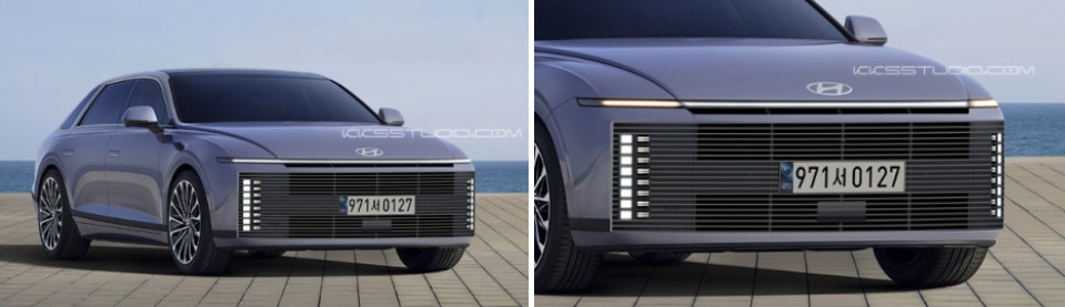 구기성 스튜디오에서 공개한 그림을 통해 예상되는 현대 그랜저의 페이스리프트는 디자인적 정체성을 유지하면서도 몇 가지 특징적인 변화가 돋보입니다. 주목할 점은 1세대 모델의 감각을 살리기 위해 그릴에 격자형 패턴이 새롭게 적용되었으며, 그릴 내부에는 은은한 H자 조형이 돋보입니다. 또한, 픽셀 램프를 활용한 헤드램프가 추가되어 미래지향적이고 현대적인 느낌을 연출한다는 점이 예측됩니다.