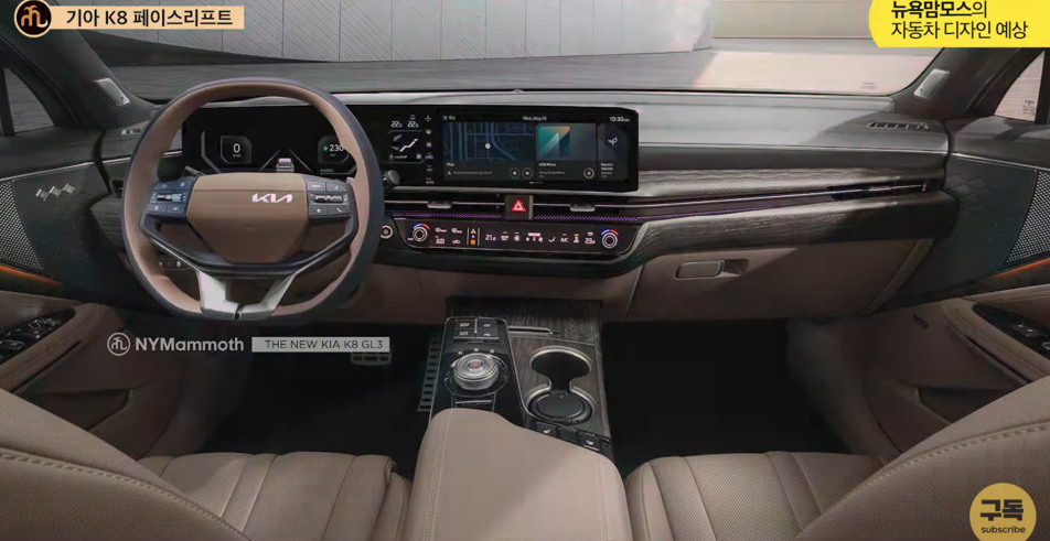기아 K8 페이스리프트의 실내 디자인 변화도 눈여겨볼 만한데요, 전반적인 디자인은 기존과 유사하지만, 한층 더 수평적인 디자인 요소를 적용해 보다 현대적이고 고급스러운 분위기를 연출하고 있는 것이 특징입니다. 특히, 파노라믹 커브드 디스플레이는 더욱 슬림해져 깔끔하고 와이드한 인상을 주며, 새로운 앰비언트 라이트가 추가되어 실내 분위기를 한층 고급스럽게 만들고 있죠. 이러한 변화는 소비자들에게 더욱 만족스러운 경험을 제공할 것으로 기대됩니다.