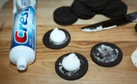 오레오라는 과자 안에 크림 대신 치약을 짜 넣어보세요, 색깔이 비슷하기 때문에 대부분 속을 텐데 냄새에 민간 한 친구들은 미리 눈치챌 수도 있겠네요. 하지만 잘 못 먹다간 목이 따갑거나 구토가 올라올 수도 있겠네요.