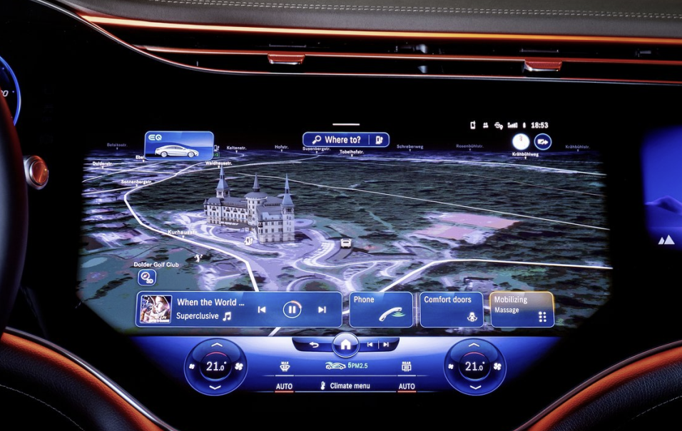 가장 큰 변화는 실내 인테리어에서 나타날 예정인데요, 현재의 세로형 인포테인먼트 시스템이 벤츠의 전기차 모델인 EQS에서 처음 선보인 하이퍼스크린으로 대체될 가능성이 큽니다. 이 하이퍼스크린은 3개의 디스플레이가 하나로 통합된 형태로, 운전자와 탑승자 모두에게 직관적이고 편리한 인터페이스를 제공하죠.