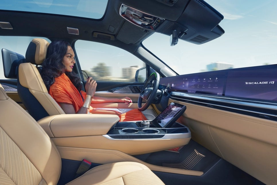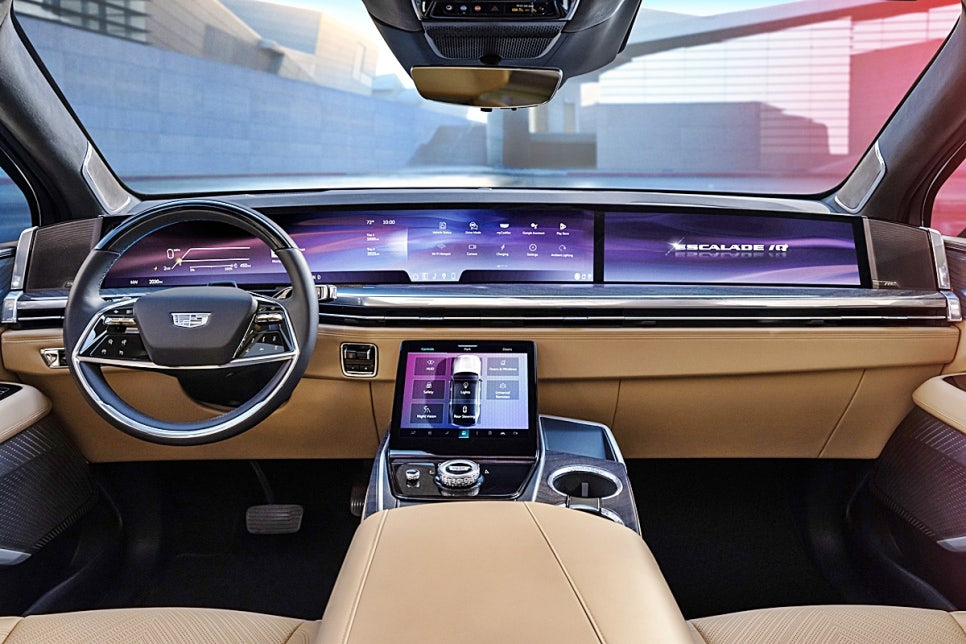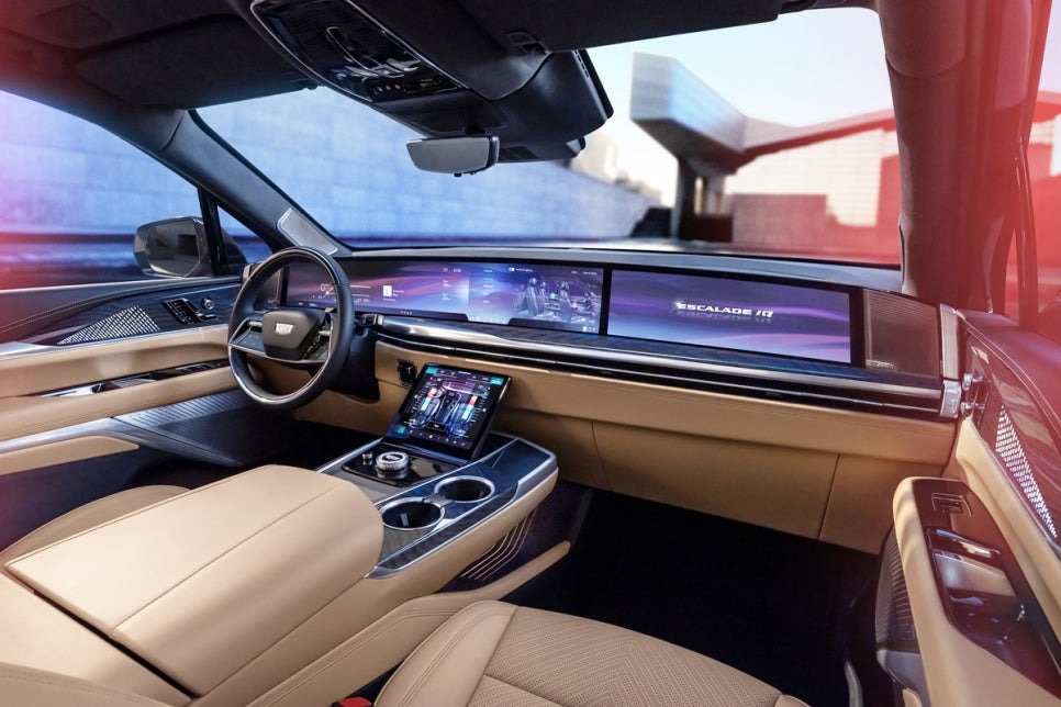 캐딜락 에스컬레이드 IQ는 브랜드 최초의 풀사이즈 전기 SUV로, GMC 허머 EV보다도 큰 차체를 자랑하는데요, 모델명은 에스컬레이드와 동일하지만, 실제로는 GM의 전기차 전용 플랫폼인 '얼티엄 플랫폼'을 기반으로 하여 전기차에 최적화된 설계를 채택했습니다. 역대 가장 큰 전기차로 꼽힐 만큼 실내 공간이 넓으며, 럭셔리 모델답게 첨단 기술과 고급 소재가 조화를 이루며 웅장한 디자인을 제공합니다. 에스컬레이드 IQ의 실내를 살펴보면 세심한 디테일이 돋보이는 것을 확인할 수 있죠.