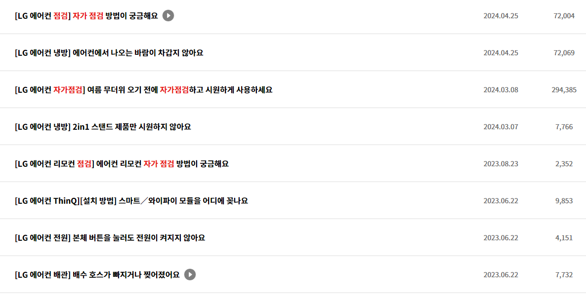 2. 엘지전자 서비스 홈페이지 → 자가점검 진행 → 자가점검 후 이상이 있을 시 사전점검 신청