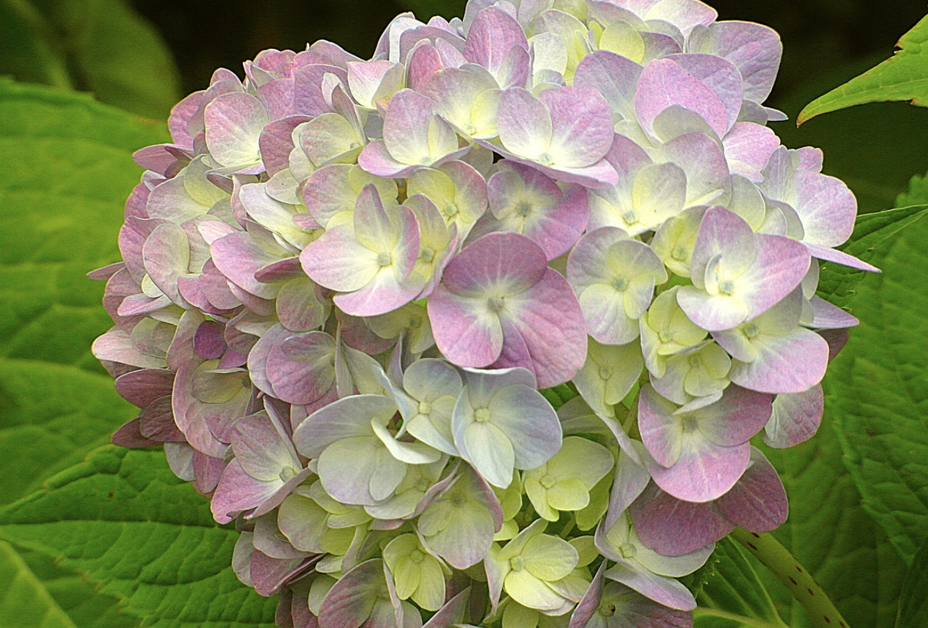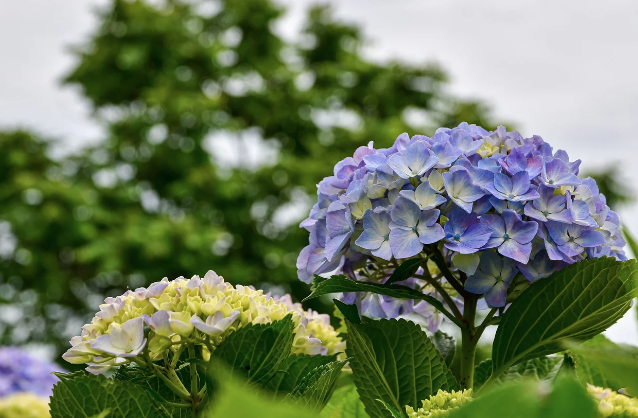 설명: 큰잎수국은 봄의 끝에서 여름까지 꽃을 피우며, 토양의 산도에 따라 색상이 변합니다.
