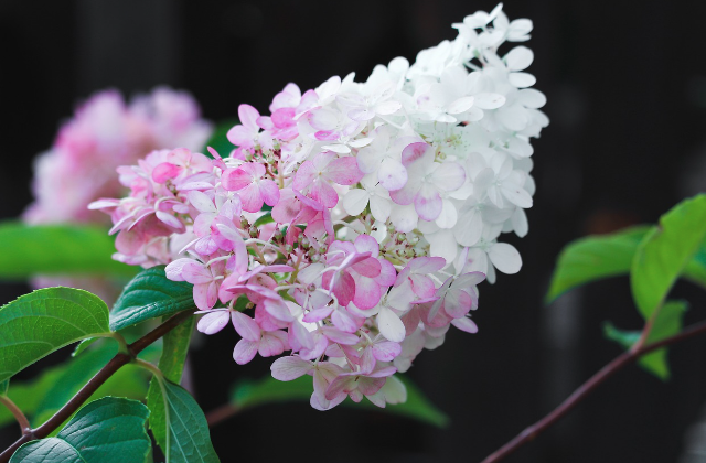 설명: 나무수국은 여름 중반부터 가을 초까지 꽃을 피우며, 시간이 지나면서 흰색에서 분홍색으로 색이 변화는 특징이 있습니다.