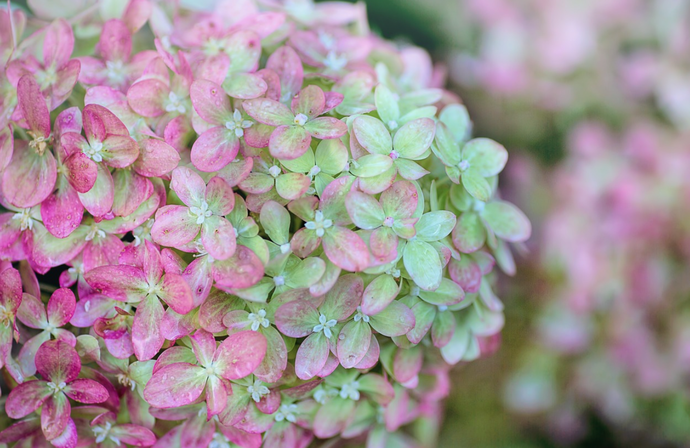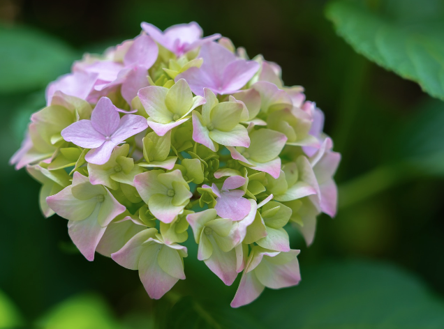 분홍 수국 : 사랑, 애정, 아름다움, 우아함