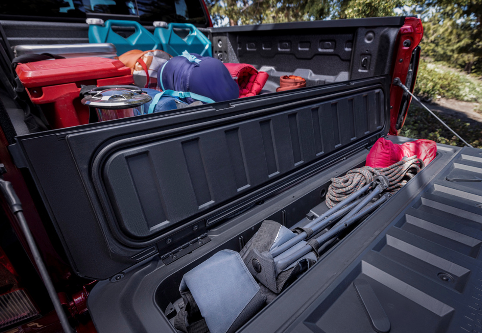 후면부에는 세로 배열된 테일램프와 LED 램프가 장착되었습니다. 테일게이트에는 CHEVROLET 레터링이 음각으로 새겨져 있으며, 입체감 있는 디자인으로 단조로움을 피했습니다. 또한, 스테퍼 기능을 수행할 수 있는 범퍼가 장착되어 있어 실용성을 더했습니다. 쉐보레 콜로라도 풀체인지는 전장과 휠베이스가 전작에 비해 다소 늘어났지만, 실내 공간은 약간 줄어들었다고 하는데요 이 부분은 고객의 호불호가 갈릴 듯 한 모습이네요. 대신 트럭 베드가 확장되어 작업 차량 등으로서의 기능성은 오히려 향상되었다고 전하고 있습니다.