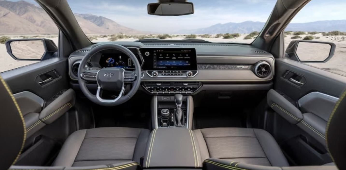 쉐보레 콜로라도 풀체인지의 실내는 디지털 클러스터와 11.3인치 대형 센터 모니터가 장착되어 있습니다. 센터패시아에는 공조기, 비상등, 차량자세제어장치 등을 제어하는 물리식 버튼과 토글스위치가 위치하며, 인포테인먼트 시스템은 센터 모니터 터치로 제어합니다. 또한, 다부진 스타일의 스티어링 휠과 모던한 느낌의 크래시패드 디자인이 적용되었습니다.