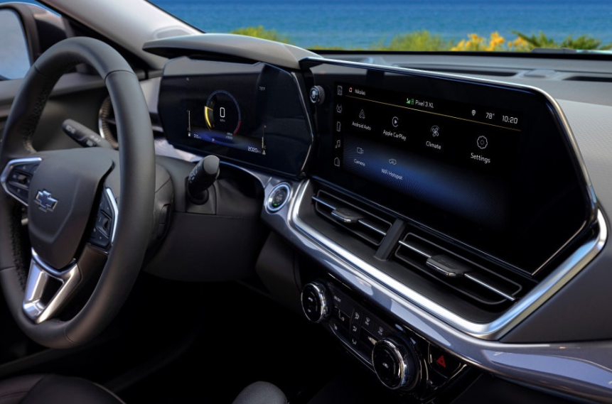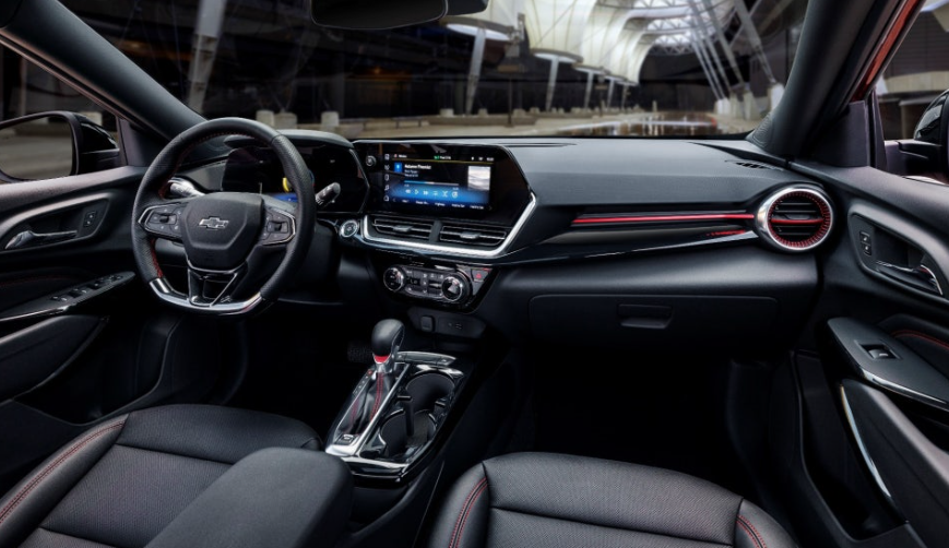 2025년형 쉐보레 트랙스의 실내 디자인은 글로스 블랙 장식이 대시보드와 도어 트림에 적용되었으며, 스티어링 휠 혼 커버에는 검은색 보타이 엠블럼이 부착됩니다. 쿨 그레이 색의 인조가죽 시트에는 젯 블랙과 빨간색을 조합하여 고유의 스타일을 더했습니다, 다른 기능과 장비 구성은 이전의 LT 트림과 유사하며, 앞 좌석 3단 조절 열선 기능과 스티어링 휠 열선, 풀 오토 에어컨, 뒷좌석 에어 벤트, 시동 버튼 및 스마트키 시스템, 2열 좌석용 일루미네이팅 듀얼 USB 충전 포트, 그리고 러기지 보드 등을 포함하고 있습니다.