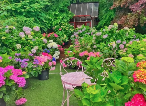 율봄식물원 수국정원은 다양한 색상과 품종의 수국이 조화를 이루는 경기도의 유명 수국 명소입니다. 약 100여 종, 1만여 주의 수국이 심겨 있어 꽃과 나무를 좋아하는 분들이 방문하기 좋은 장소입니다.