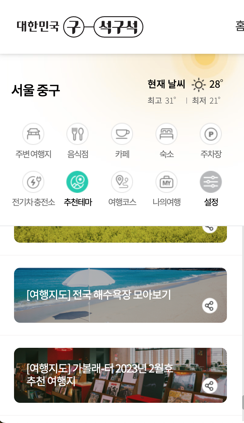 5) 추천테마에서 전국 해수욕장 모아보기에서 지도로 확인을 할 수 있습니다.