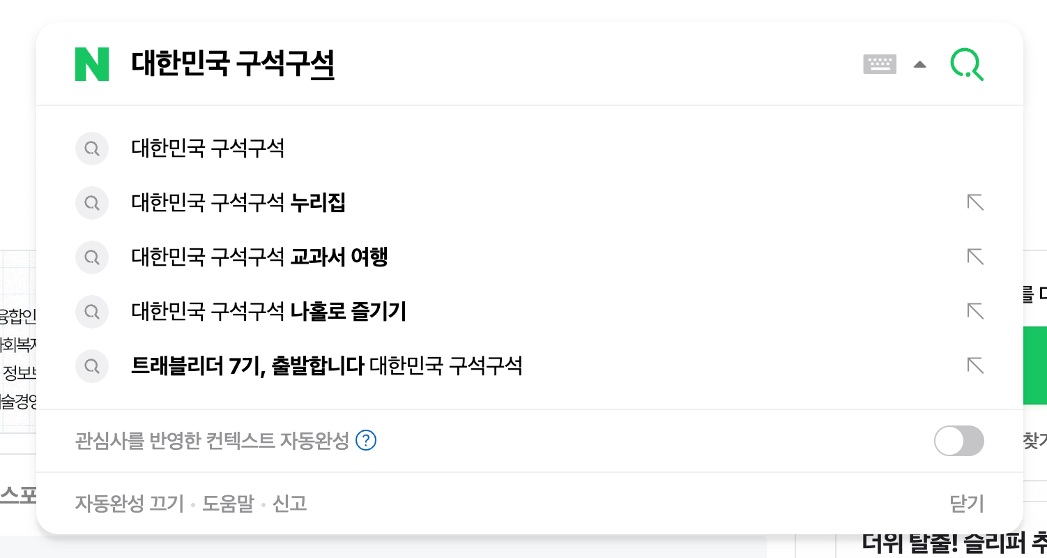 1) 네이버 포털에 대한민국 구석구석을 검색합니다.