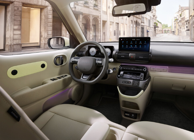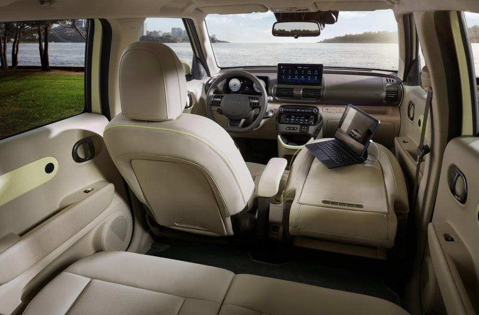 현대자동차는 캐스퍼 일렉트릭에 10.25인치 컬러 LCD 클러스터와 내비게이션, 인터랙티브 픽셀 라이트가 탑재된 스티어링 휠, 앰비언트 무드 램프 등을 적용해 더욱 편리하고 안락한 실내 환경을 제공했는데요, 또한 스티어링 칼럼에 전자식 변속 칼럼을 적용해 센터페시아 하단부를 슬림하게 디자인했으며, 벤치 타입 시트 형상을 통해 1열에서의 편안한 이동을 가능케 하여 더욱 쾌적한 거주 공간을 확보했습니다.