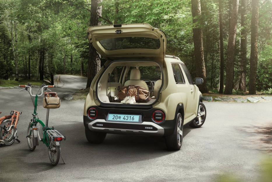 부산 모빌리티쇼에서 처음 공개된 캐스퍼 일렉트릭은 전 후면부에 현대자동차 EV 모델만의 독창적인 디자인 요소인 픽셀 그래픽을 적용하여 미래지향적인 이미지를 구현했다는 평을 듣습니다. 측면부에는 픽셀을 형상화한 휠 디자인을 적용해 강인한 느낌을 주고, 리어 도어 핸들부에는 로봇 표정의 배지를 새겨 캐스퍼만의 개성을 더욱 강조했죠, 또한, 기존 캐스퍼 대비 휠베이스를 180mm 늘려 2열 레그룸을 넓혔으며, 트렁크부 길이를 100mm 늘려 기존 233ℓ 대비 47ℓ 증가한 적재 공간을 확보하여 공간 효율성을 높였습니다.
