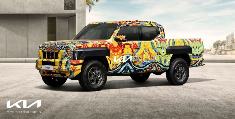 기아 자동차는 첫 픽업트럭인 '더 기아 타스만'의 전용 위장막 모델을 공개 했습니다. 타스만은 '미지 가보지 못한 길'이란 주제로 호주와 뉴질랜드 유명 아티스트 리처드 보이드-던롭과 협업해 타스만 위장막 디자인을 개발했다고 전했습니다.
