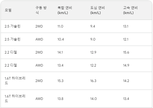팰리세이드 연비와 비교해 볼 준대형 SUV 모델들입니다. 공식 연비의 가성비를 따져보았을 때 해외자동차는 연비가 좋지 않다는 것을 알 수 있으며 국내 차종 중에는 가솔린 기준 쏘렌토가 1순위 팰리세이드 2순위 모하비 3순위입니다. 팰리세이드 2.5 터보 하이브리드가 나온다면 연비가 어떻게 될지 궁금해집니다. 참고하시기 바랍니다.