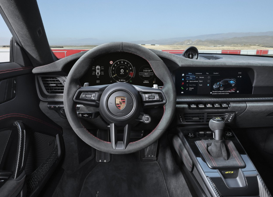 인테리어는 모터스포츠의 본질을 강조하며, 검은색 색조와 고급 소재 조합으로 세련된 분위기를 제공합니다. 다양한 좌석 옵션과 함께, 고객은 자신만의 맞춤형 인테리어를 구성할 수 있습니다. 조종석은 직관적이고 사용 편의성을 높이기 위해 설계되었으며, 12.6인치 고해상도 디스플레이와 다양한 주행 데이터를 직관적으로 제공하는 ‘트랙 화면’ 모드도 지원합니다.