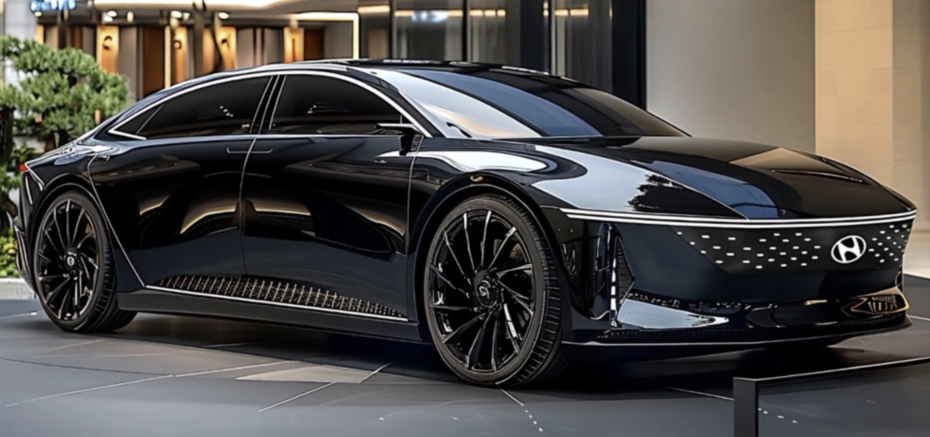 현대는 또한 블랙 익스테리어 패키지를 새롭게 도입해 그랜저의 외관 스타일을 더욱 강화했습니다. 이 패키지는 그릴, 로고, 휠 등을 어둡게 처리해 더욱 고급스러우면서도 강렬한 인상을 주며, 올블랙 페인트 마감과 결합하면 더욱 공격적이고 프리미엄한 이미지를 연출할 수 있습니다. 상상도에서도 이러한 블랙 패키지의 분위기가 반영된 것으로 보입니다.