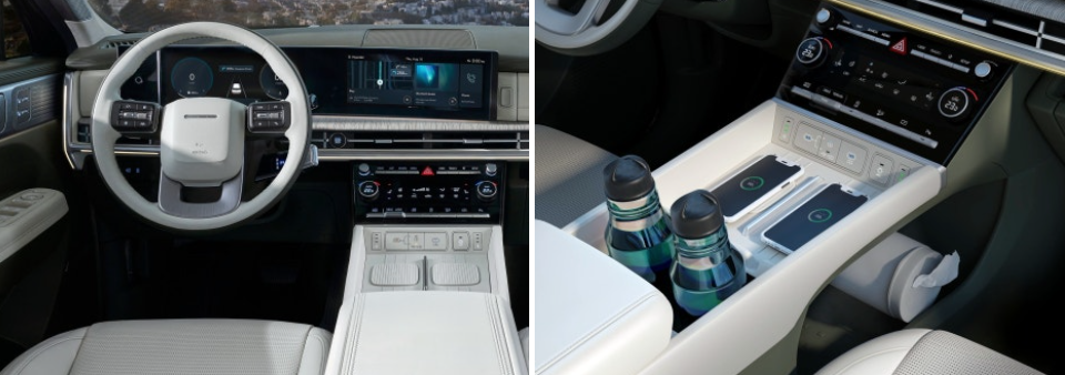 또한, 터치와 다이얼이 조화를 이루는 공조 시스템은 현대적이고 하이테크한 느낌을 주며 사용자의 직관성을 높이는데요, 현대자동차그룹 최초로 도입된 듀얼 무선 충전 패드와 양방향 암레스트는 신형 싼타페의 가치를 한층 더 높여주는 중요한 요소입니다. 전반적으로 신형 싼타페의 실내 디자인은 외형 디자인에서 호불호가 갈리는 것과는 달리 상당히 만족스럽죠, 특히 박시한 외형을 바탕으로 2열 시트를 폴딩 하면 기존 중형 SUV에서 경험하지 못한 넓고 쾌적한 실내 공간을 제공하며, 여유로운 실내 환경을 자랑합니다.