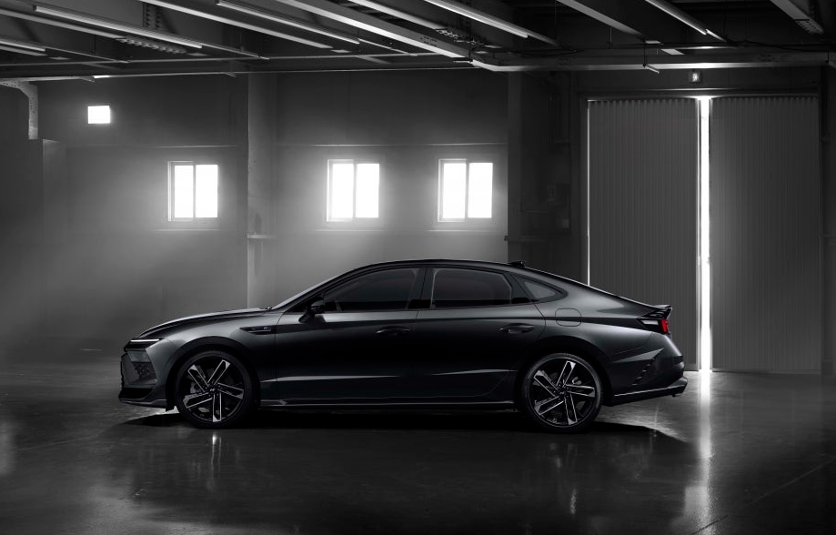쏘나타 디 엣지 N라인의 사이드 프로파일은 날렵한 사이드 스커트로 장식되어 있는데요, 이 N라인 전용 사이드 스커트는 차체의 하단부를 더욱 넓어 보이게 만들어주고 있죠. 또한, N라인 모델에는 19인치 알로이 휠이 장착되어 있어 대형 휠로 인해 역동적인 비율을 강조하며, 퍼포먼스 주행을 위해 안정성과 그립력을 높인 전용 고성능 타이어가 적용되었습니다.