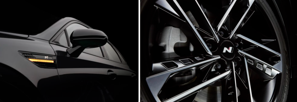 후면 디자인에서는 스포티한 느낌을 강조하기 위해 듀얼 트윈 머플러가 적용되어 고성능의 상징으로 자리 잡고 있으며, 공기 저항을 줄이고 다운포스를 증가시키기 위해 N라인 전용 리어 디퓨저가 장착되었습니다. 실내에서는 N 라인 전용 스티어링 휠이 장착되어 있어 뛰어난 그립감과 스포티한 주행 느낌을 제공하는데요, 고급스러움과 스포티함을 동시에 느낄 수 있는 알루미늄 페달이 특징적으로 포함되어 있습니다.