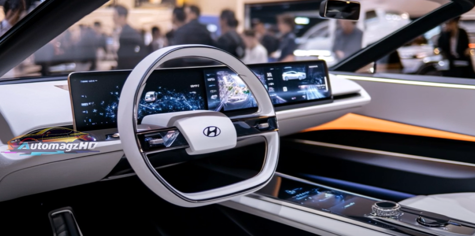 차세대 쏘나타의 실내는 기존과 유사한 듀얼 스크린이 적용되어 있으며, 수평 디자인을 강조해 실내 공간을 더 넓어 보이게 합니다. 특히 기어 노브 자리에 디스플레이가 탑재되고, 다이얼 방식이 적용된 모습이 돋보입니다. 또한, 물리적 버튼이 거의 없으며, 스티어링 휠은 D컷 형태로 터치 버튼이 적용된 깔끔한 디자인이 예상됩니다.