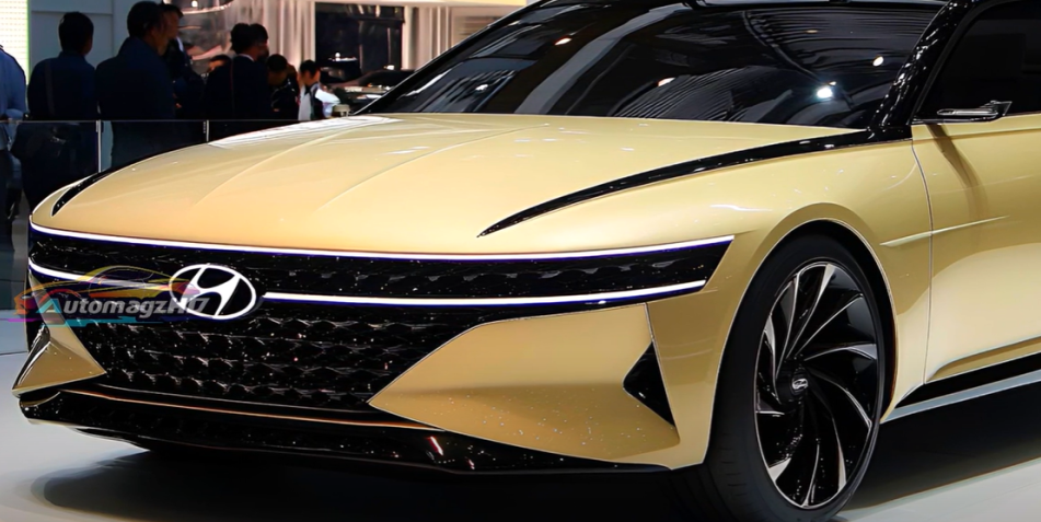 현재 공개된 차세대 쏘나타 예상도를 보면, 전면부에는 심리즌 호라이즌 램프가 두 줄로 적용되어 현대 로고와 통합된 조명 시스템이 미래지향적인 느낌을 강조하는데요, 그릴과 램프의 면적이 더 커지면서 상어와 같은 범퍼 라인이 스포티하고 공격적인 이미지를 부각합니다. 이런 디자인 요소는 차를 더 낮고 넓어 보이게 하여 역동적인 이미지를 완성하죠.