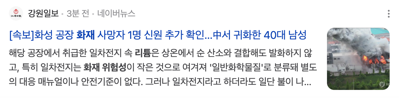 리튬배터리 공장 화재