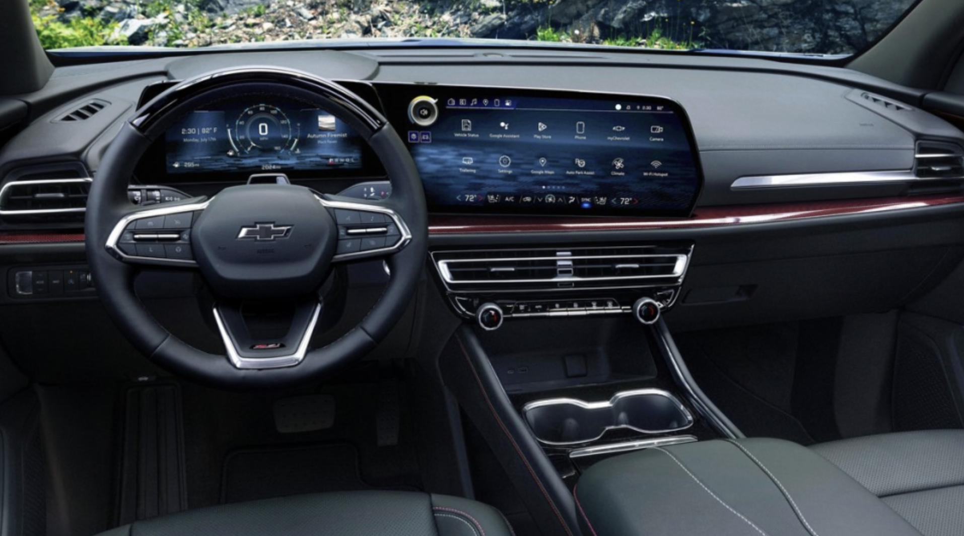 트래버스의 넓은 실내 공간은 여전히 가장 큰 장점 중 하나입니다. 3열 SUV로서 가족 단위의 여행이나 캠핑에도 적합한 넉넉한 트렁크 공간을 제공하며, 2열 캡틴 의자를 통해 3열로의 접근성을 쉽게 확보할 수 있습니다. 실내에는 새로운 대시보드 디자인이 적용되었으며, 표준 11인치 운전자 정보 디스플레이와 17.7인치 인포테인먼트 터치스크린이 장착되어 고급스러움을 더했습니다. 이 대형 디스플레이는 더 직관적인 사용자 경험을 제공하며, 최신 쉐보레 인포테인먼트 시스템이 포함되어 편리한 차량 제어를 지원하고 있습니다.