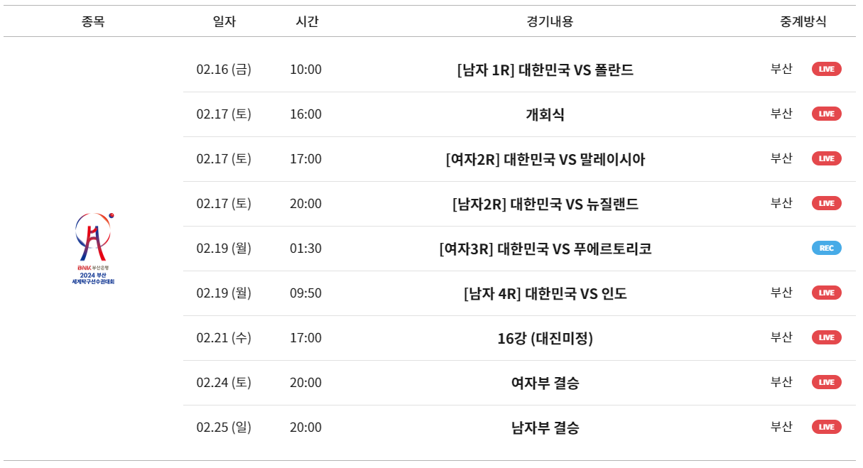 2024 부산세계탁구선수권대회 중계 일정 탁구 반송
