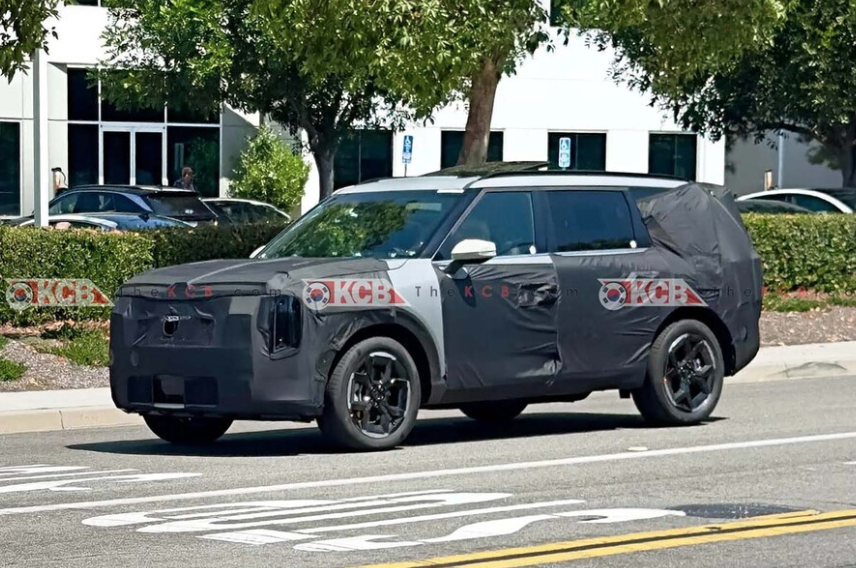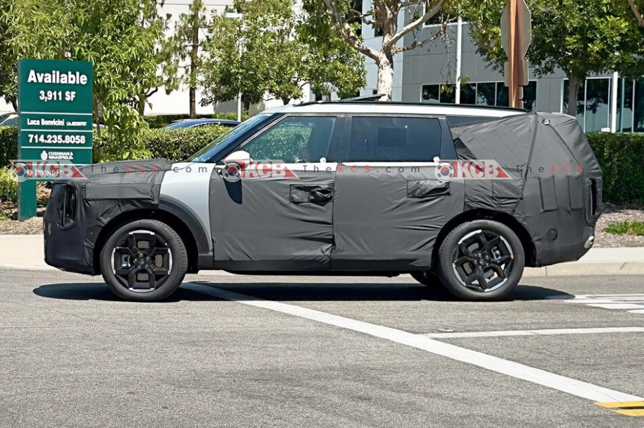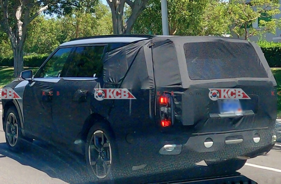 측면부 또한 EV9과 유사한 디자인을 채택하고 있는데요, ‘Y’자 형태의 기하학적 캐릭터 라인, 블랙 마감된 A필러, 위로 경사진 D필러 벨트라인, 플로팅 루프 디자인이 동일하게 적용되었습니다. 휠 디자인은 신형 쏘렌토와 같은 스타일로, 휠하우스와 차체 하단부는 클래딩으로 마감되어 있습니다. 후면부의 예상도는 아직 공개되지 않았지만, 이전에 포착된 테스트카의 모습에 따르면, 세로형 테일램프 등 현대차 ‘팰리세이드 풀체인지’와 유사한 실루엣을 갖추고 있는 것으로 보여집니다.