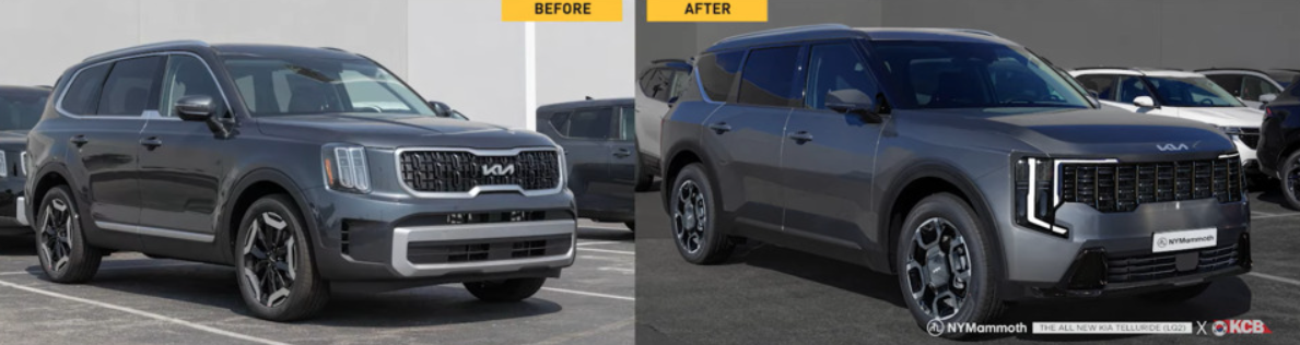 기아가 내년 출시를 계획 중인 '텔루라이드 풀체인지'의 예상도가 처음으로 공개되어 많은 관심을 모으고 있는데요, 유튜브 채널 뉴욕맘모스는 이전에 포착된 텔루라이드 풀체인지 테스트카를 바탕으로 새로운 예상도를 선보였습니다. 이 디자인은 전반적으로 확대된 차체와 함께, 기아의 최신 디자인 언어인 오퍼짓 유나이티드 및 스타맵 시그니처 라이팅을 반영하고 있는 모습으로 역시 기아의 패밀리룩을 완성도 있게 보여주고 있습니다. 한번 살펴보도록 하겠습니다.