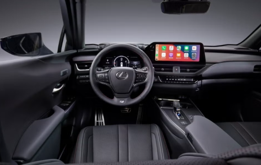 또한, UX 300h는 F SPORT 모델도 함께 선보이는데요, F SPORT 모델에는 전용 버티컬 메시 패턴의 스핀들 그릴과 제트 블랙 도금이 적용되어, F SPORT의 드라이빙 퍼포먼스를 시각적으로 표현하는 디자인이 단연 돋보이죠, 실내에는 F SPORT 전용 시트가 장착되었으며, 3개의 다중 정보 디스플레이를 통해 다양한 정보를 동시에 확인할 수 있습니다. 또한, 주행 모드에 따라 계기판 디자인이 변경되는 12.3인치 풀 그래픽 미터를 탑재해 차별화를 더했습니다.