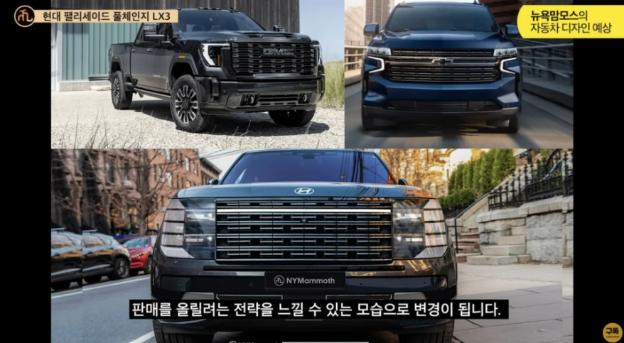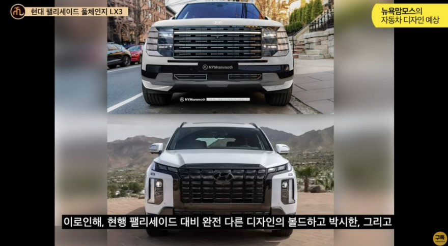 팰리세이드 풀체인지 LX3 스파이샷 및 테스트카 자주 포착되다. 최근 뉴욕매머드님이 휴식기 동안의 공백을 메우려는 듯, 다양한 현대 팰리세이드 풀체인지 예상도를 공개하며 주목을 받고