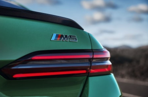 2025 BMW M5는 새롭게 디자인된 키드니 그릴을 특징으로 하며, 이 그릴은 탄소 섬유 채널로 강화되어 일반 BMW 5시리즈보다 더욱 강렬한 외관을 선보이고 있습니다. 휠 하우스 앞쪽은 3.0인치(7.6cm)를 더 넓혀 M5의 펜더는 일반 5시리즈 모델보다 더 넓은 디자인을 자랑하고 있으며, 차량의 후면은 디퓨저가 장착된 쿼드 배기 팁으로 강조되어 있습니다. BMW는 기본적으로 단색 1가지와 메탈릭 옵션 9가지를 제공하며, 추가 비용을 지불하면 BMW Individual 페인트를 선택할 수도 있습니다.