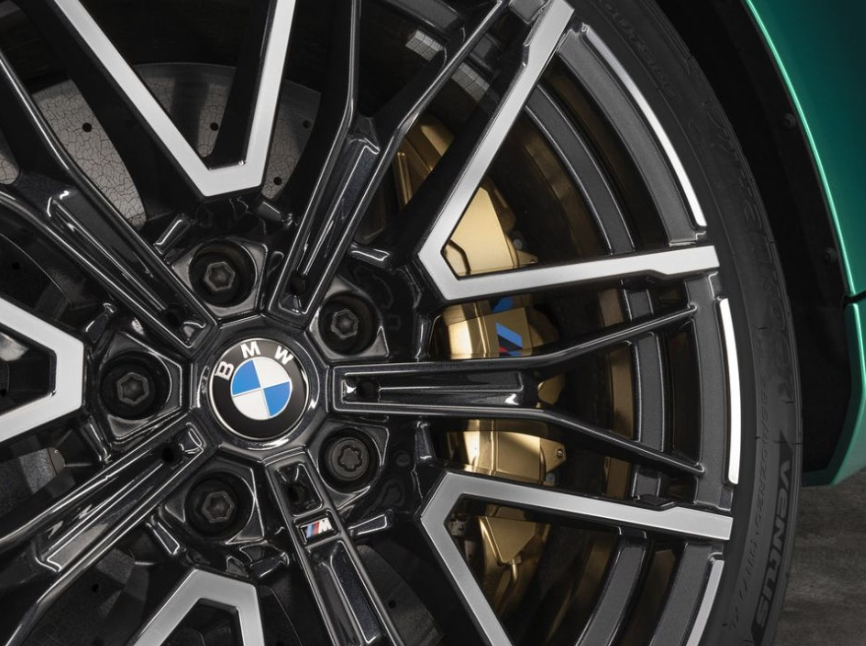 2025년형 BMW M5는 대형 6피스톤 고정식 캘리퍼가 앞 차축에 장착된 대형 브레이크 세트 또는 추가 비용의 카본 세라믹 브레이크 세트로 제동을 처리하는데요, 후방에는 싱글 피스톤 플로팅 캘리퍼가 장착되어 있습니다. 카본 세라믹 브레이크는 제동력을 강화하고 브레이크 페이드 현상을 줄이면서도 표준 스티어링 포인트보다 약 55파운드(25kg) 더 가벼운 것으로 알려져 있습니다. 앞 바퀴는 20인치, 뒷 바퀴는 21인치로 크기가 다르게 장착되었습니다.