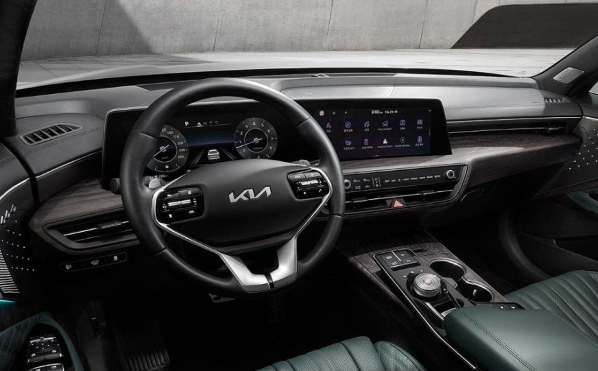 K8 페이스리프트의 실내는 다양한 편의성 개선이 이루어질 예정입니다. 최신 ccNC 인포테인먼트 시스템이 탑재되고, 기(Ki) 테마가 적용된 새로운 클러스터 디자인이 도입될 것으로 기대됩니다. 또한 지문인식 시스템과 무선 소프트웨어 업데이트 기능을 통해 편의성이 크게 향상될 전망입니다.