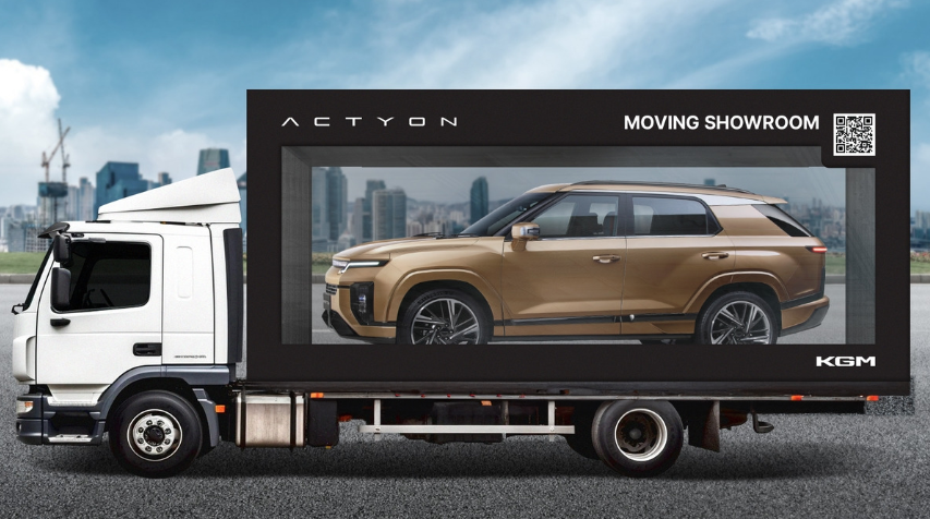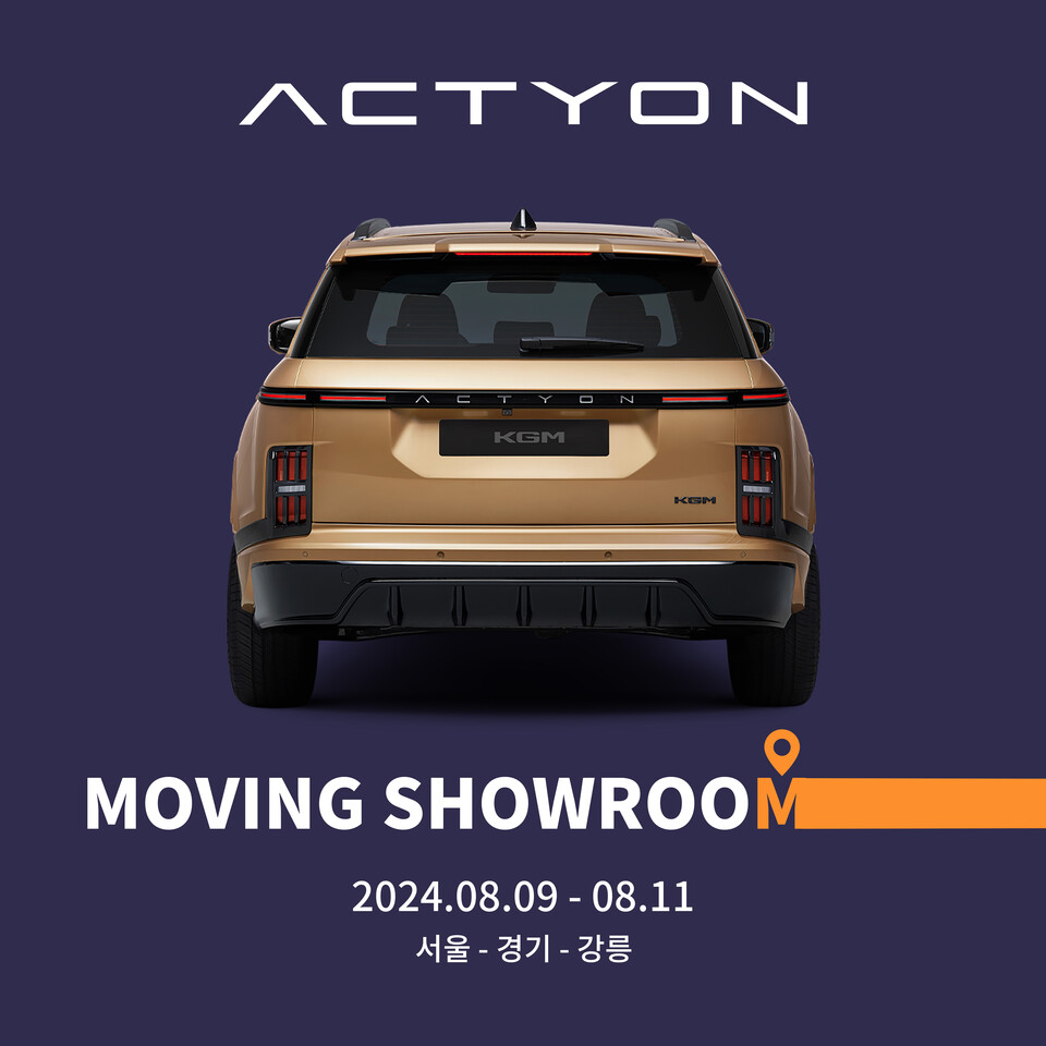 이런 반응에 힘입어 KGM은 고객들에게 액티언을 더욱 신속히 선보이기 위해 오는 12일에 판매 가격과 제품 정보를 공개하고, 사전계약 없이 본계약을 실시할 예정인데요, '액티언 무빙 쇼룸(ACTYON MOVING SHOWROOM) 이벤트'는 액티언 실물 차량을 이동식 쇼룸에 실어 인구 밀집 지역과 주요 관광지를 순회하며 고객들을 만나는 행사입니다. 이를 통해 고객들은 본격적인 출시 전에 액티언의 역동적이고 세련된 디자인을 가장 먼저 확인할 수 있습니다.